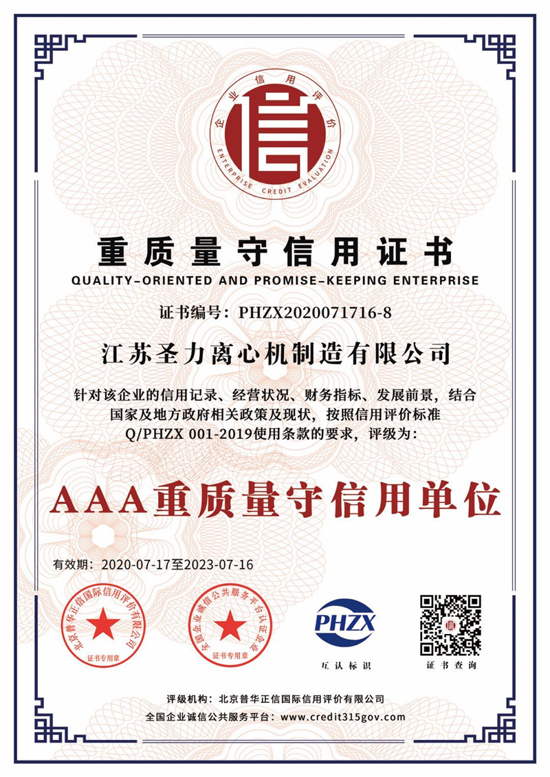 江蘇圣力離心機制造有限公司是國內(nèi)分離機械行業(yè)中主要的離心機生產(chǎn)企業(yè),對離心機的研究、設(shè)計、制造有多年的歷史,擁有齊全的設(shè)備、完善的檢測手段。公司已通過IS09000國際質(zhì)量體系認(rèn)證、ISO14001環(huán)境管理體系認(rèn)證、ISO45001:2018職業(yè)健康安全管理體系認(rèn)證和CE認(rèn)證,是江蘇省高新技術(shù)企業(yè),曾榮獲國家和地方多項榮譽稱號。